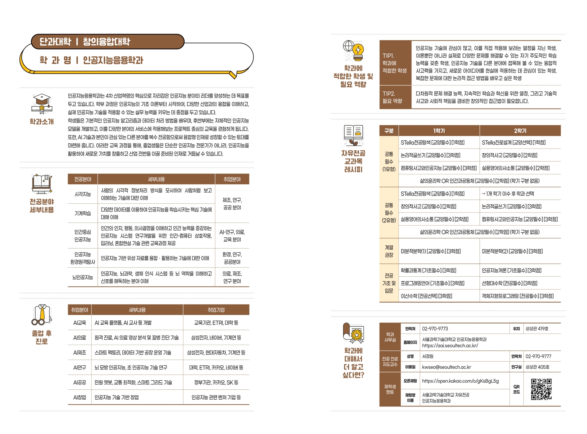 - 학과 홈페이지 링크 : aai.seoultech.ac.kr - 오 픈 채 팅 방 링크 : open.kakao.com/o/gKsBgL5g