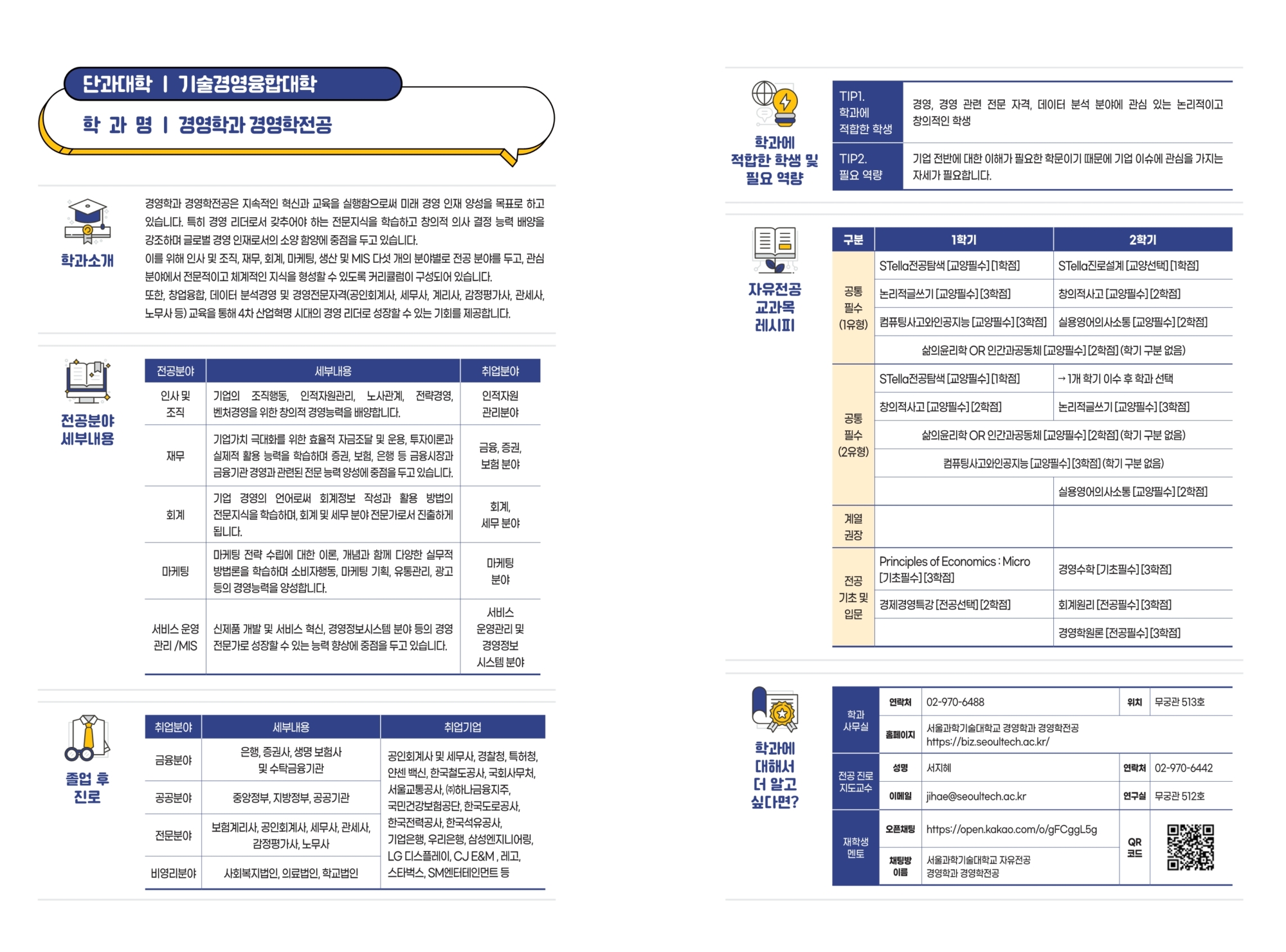 - 학과 홈페이지 링크 : biz.seoultech.ac.kr - 오 픈 채 팅 방 링크 : open.kakao.com/o/gFCggL5g