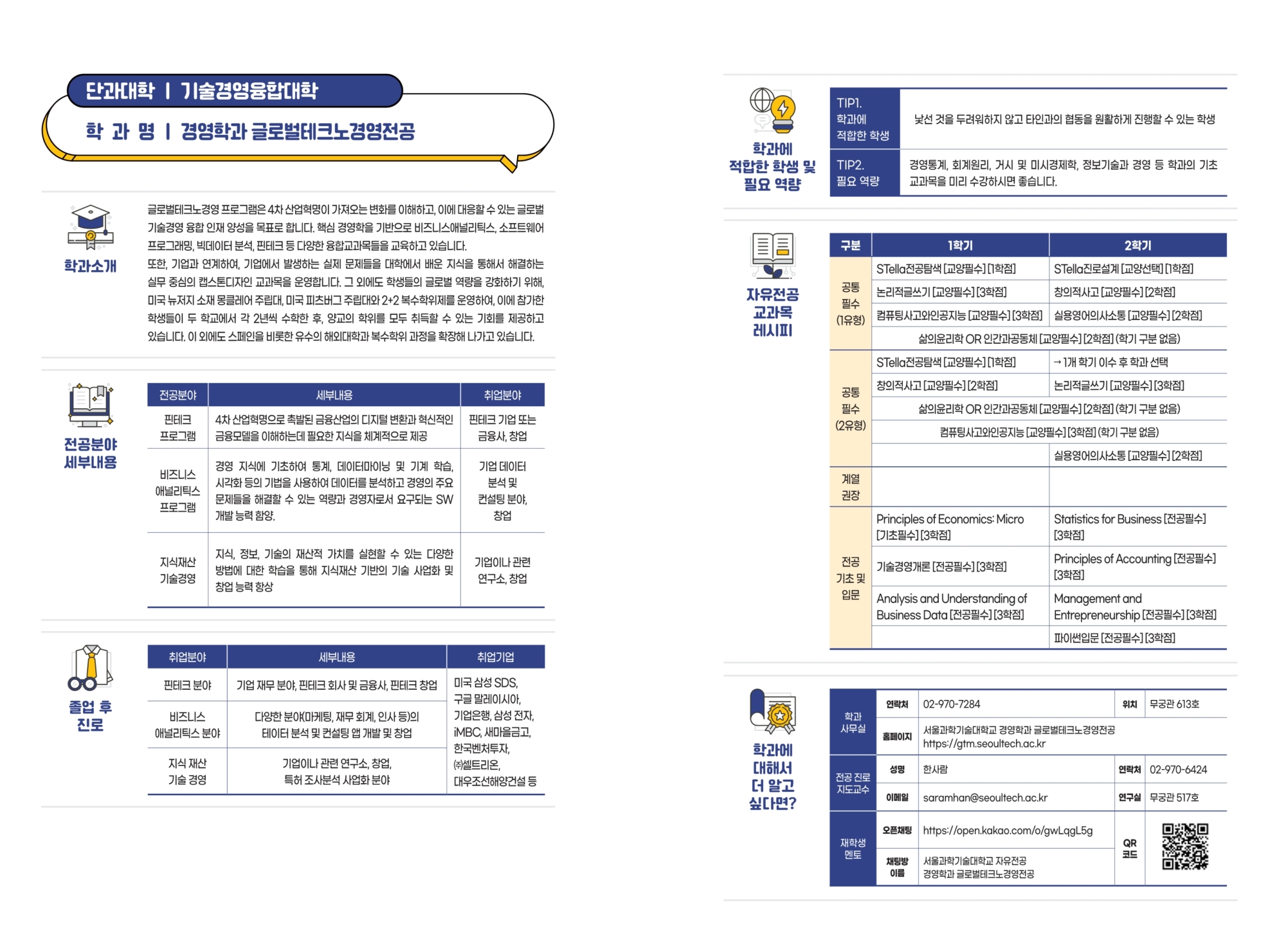 - 학과 홈페이지 링크 : gtm.seoultech.ac.kr - 오 픈 채 팅 방 링크 : open.kakao.com/o/gwLqgL5g