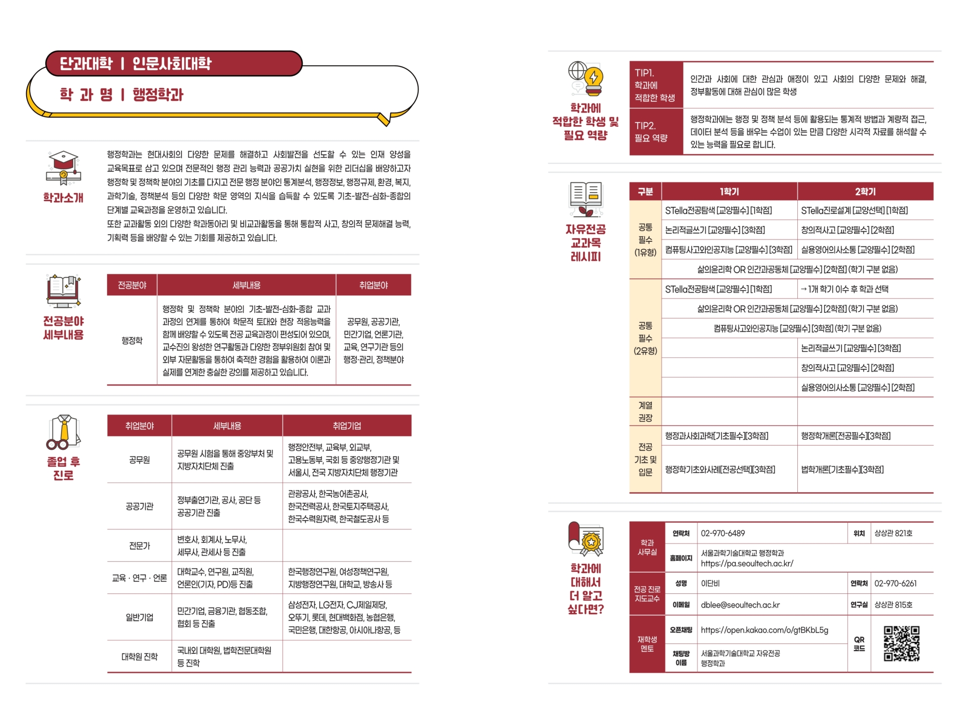 - 학과 홈페이지 링크 : pa.seoultech.ac.kr - 오 픈 채 팅 방 링크 : open.kakao.com/o/gtBKbL5g