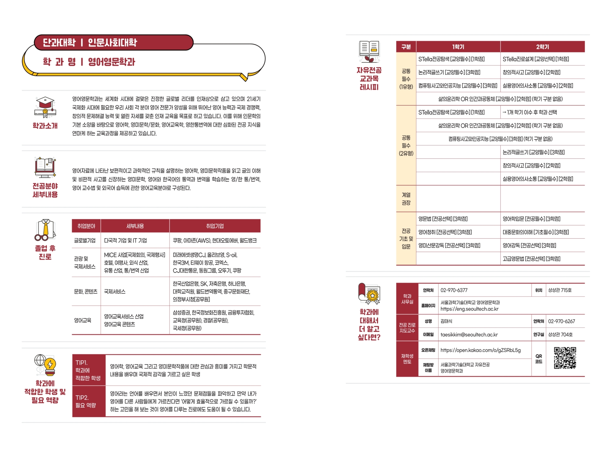 - 학과 홈페이지 링크 : writing-creative.seoultech.ac.kr - 오 픈 채 팅 방 링크 : open.kakao.com/o/gbl3bL5g